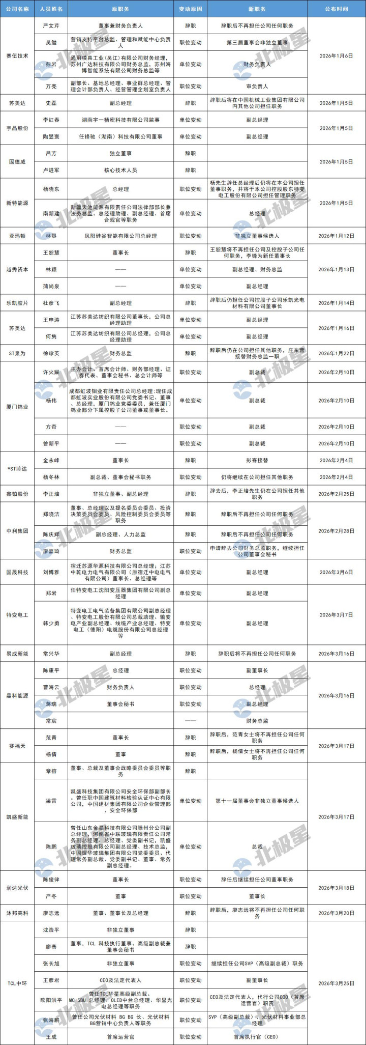本年3月,润达光伏换届,原董事长陈俊德因个东说念主原因辞任,离任后仍不息担任公司董事,本色甘休东说念主严冬出任董事长。同月,凯盛新能完成中枢东说念主事调整,章榕因责任调整,辞去董事、总裁及董事会政策委员会委员等职务,由具备丰富经管与时刻训戒的陈鹏接任总裁。