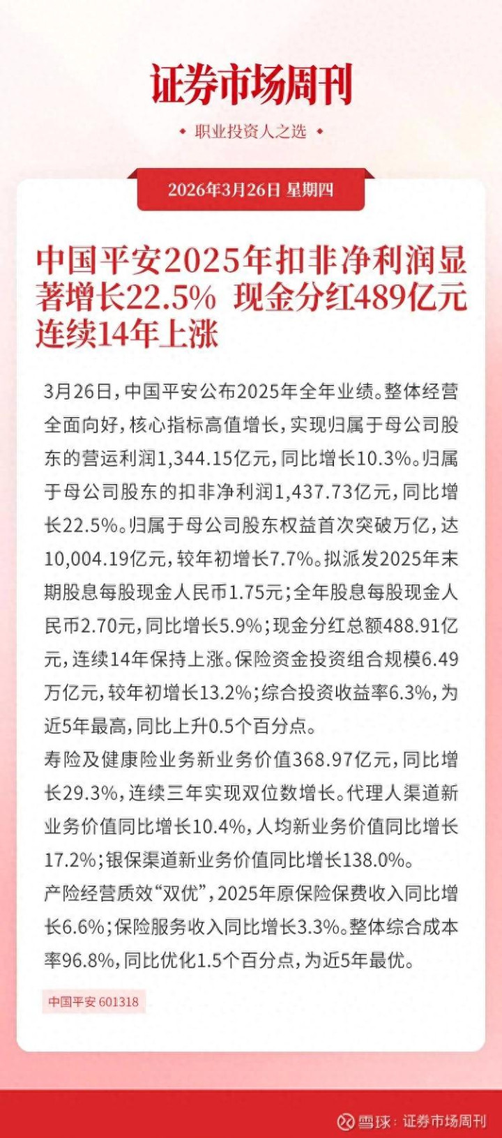 3月26日晚上,中国祯祥发布2025年全年景绩单,一组亮眼数据勾画出寿险修订深刻成效与概括金融谨慎底色,也为市集传递了穿越周期的刚毅信心。