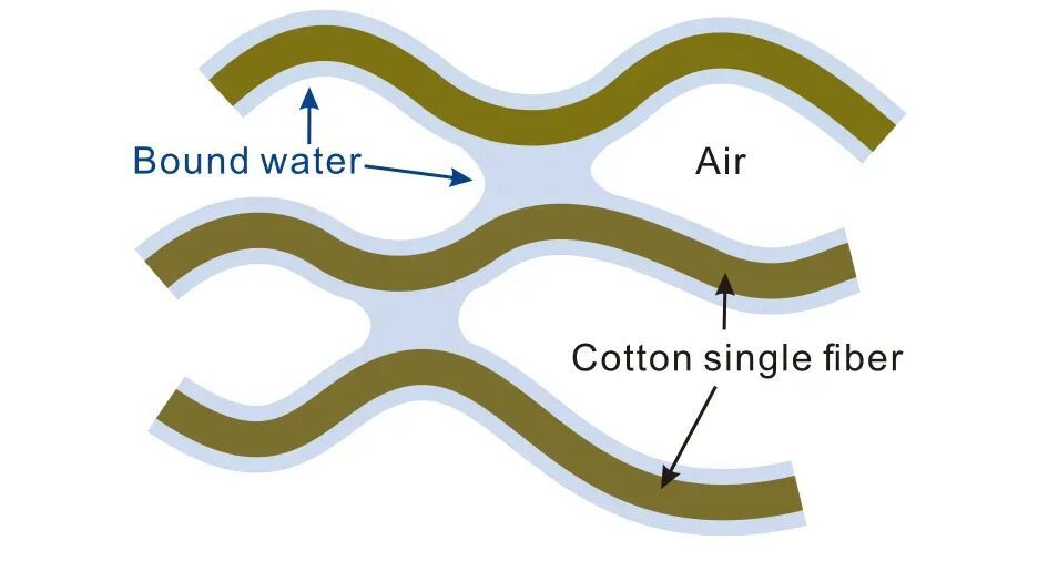 与棉纤维(深黄色)纠合在一说念的水(蓝灰色),图片开端:参考文件[2]