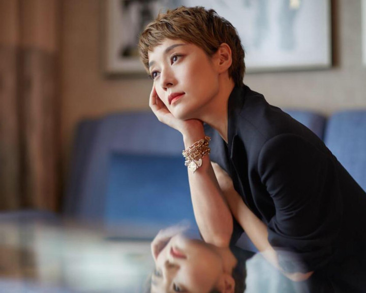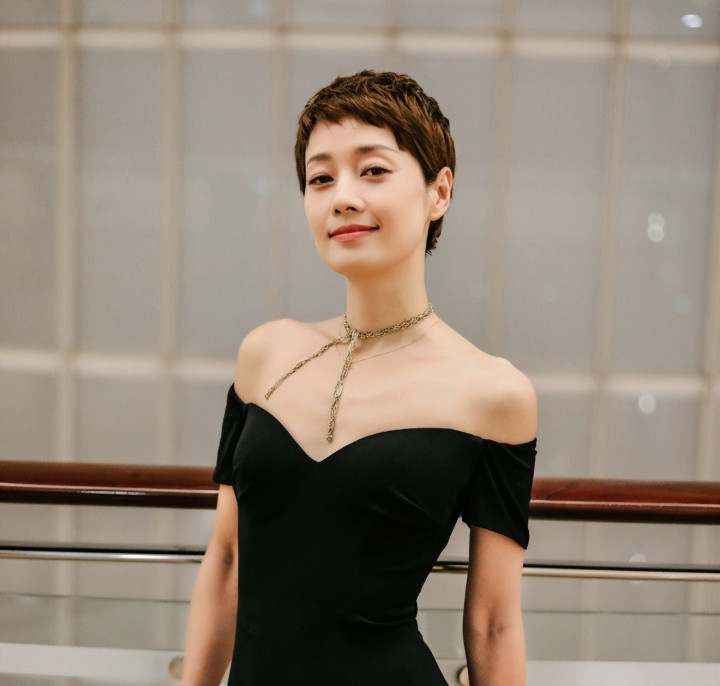 与以往利落短发、温婉大气的姿色,几乎迥乎不同。
