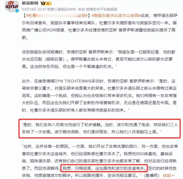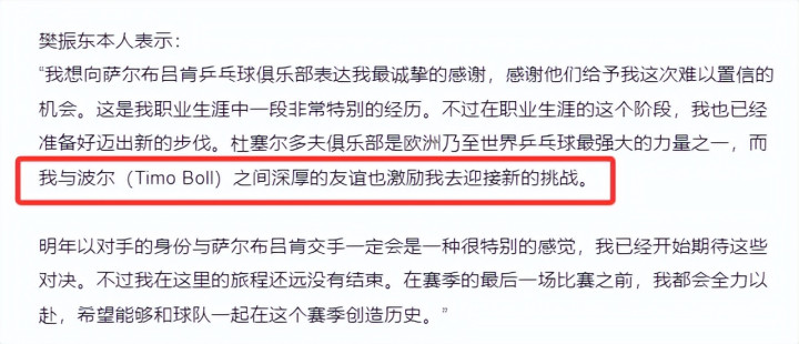 就连该俱乐部主席皆暗示“归根结底,这次转会也和波尔与樊振东的友谊相干”。