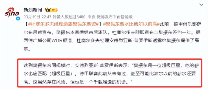“樊振东的薪水是德甲从未有过,致使可能卓越波尔早期的公约”。