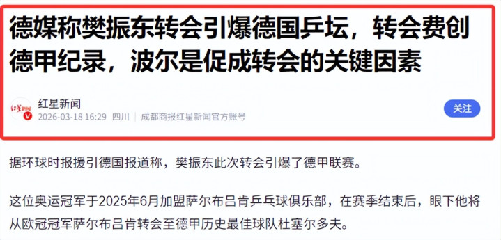 这个音讯很快引起扣问,致使还有德媒称这次转会将会是“乒乓球界地震”。