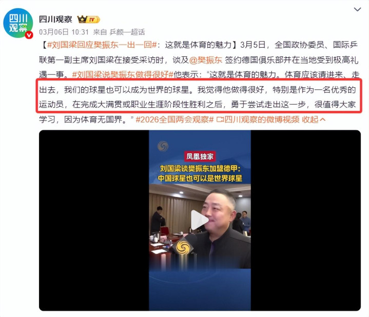 而在前段技能的两会上,刘国梁也谈及了对樊振东加盟德甲的倡导。