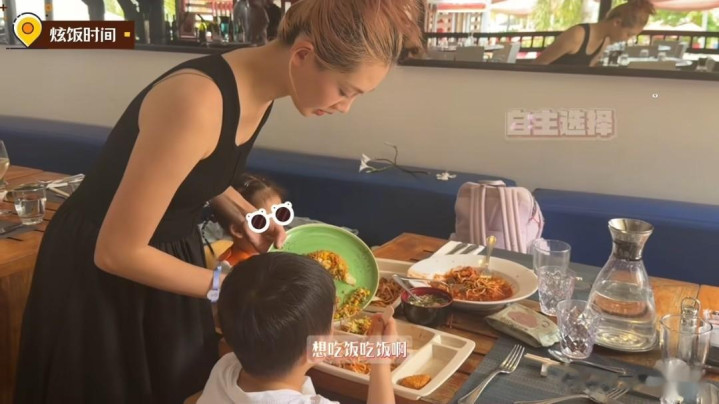 三胎女儿长的圆呼呼的,一看就被养的独特好,何况她也和姐姐雷同,相配乖巧。吃饭工夫,姐姐安娜去帮姆妈拿餐,她就和哥哥在桌边等,苗苗给孩子们分餐,她就在一旁我方喂饭。