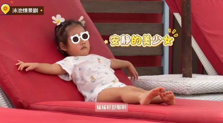 爸爸郑恺带着哥哥姐姐在泳池玩耍,姆妈在拍摄记载时,她我方一个东说念主躺在沙滩椅上,不哭不闹,一会玩下墨镜,一会发一下呆,独特悠闲淡定。有孩子的齐知说念,这发达关于一个不到3岁的孩子来说太困难了。