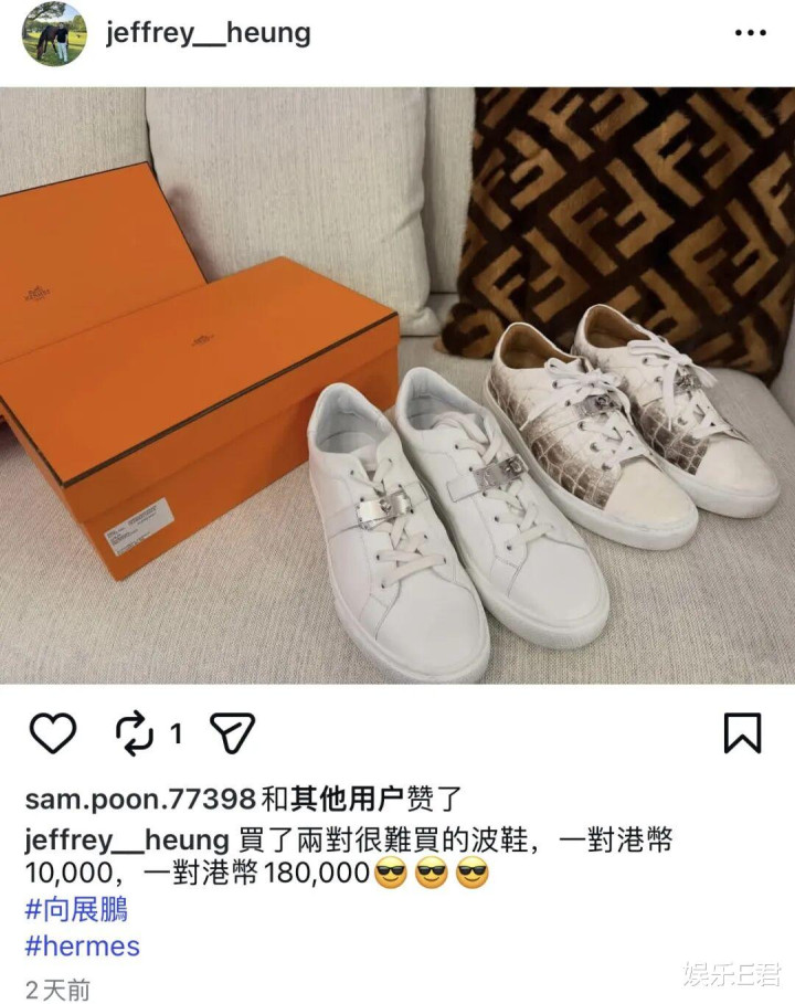 向展鹏晒出爱马仕极难起原的VIP限量款,并亲身写下的霸气配文:“当你如故领有一对港币1万元的暴露鞋,你就会学我追求多一对港币18万元的暴露鞋。”