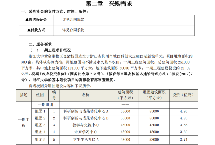 文献末尾的附件为权术文献定稿,长远为浙江大学紫金港校区良渚校园一期工程形状冷落书编制就业发售稿。