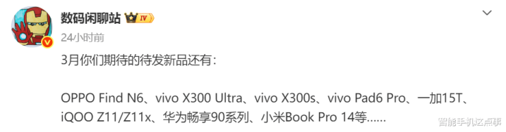 影像旗舰这边,vivo X300 Ultra的存眷度最高,此前在MWC 2026上也曾亮过相,国内发布会稍晚。