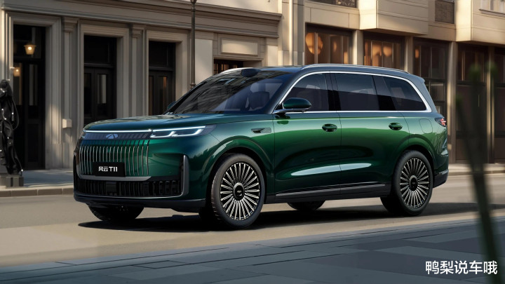 外不雅气场很足,前脸禁受阻滞式格栅,一条日行灯横贯前脸,下方两侧是一面目大灯,还有“T字型”镀铬掩饰点缀,显得很高档大气。车身侧面口角遮盖式门把手,车身两侧分离有充电口和加油口,车顶配有激光雷达,辨识度拉满。尺寸方面,长宽高分离是5205×1999×1800mm,轴距3030mm,提供玄夜黑、天屿蓝、松间绿等6种车身涂装,可选性好多。