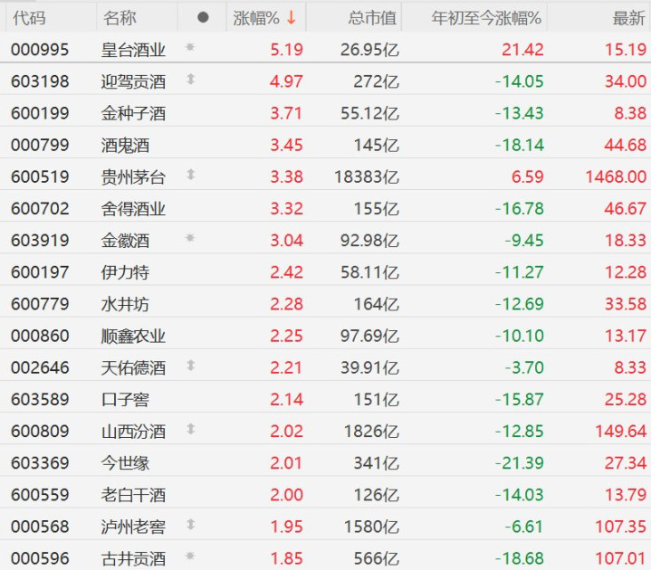 格隆汇3月31日|A股阛阓白酒股集体高开,其中,皇台酒业涨超5%,迎驾贡酒涨近5%,金种子酒、酒鬼酒、贵州茅台、舍得酒业、金徽酒涨超3%。音讯面上,贵州茅台时隔2年5个月秘书上调茅台酒价,自2026年3月31日起,将飞天茅台酒销售条约价由1169元/瓶上调为1269元/瓶、自营体系零卖价由1499元/瓶上调为1539元/瓶。
