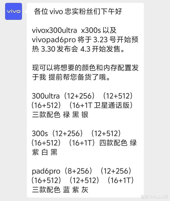 因为近期有多位博主放出的截图夸耀,vivo X300 Ultra、X300s和Pad6 Pro将于3月30日发布,4月3日全面开售。