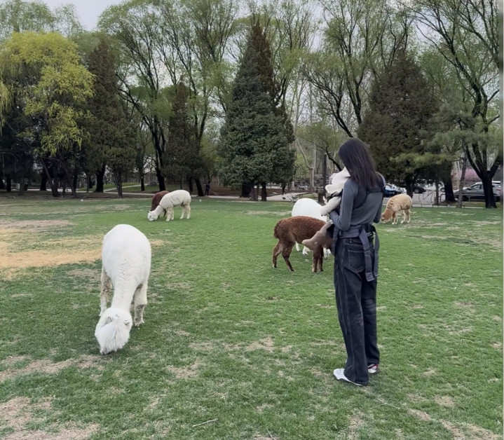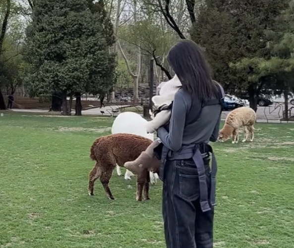 宝宝坐腻了婴儿车,何穗就用背带背着男儿来看小动物们吃草。固然何穗穿的挺低调的,可是她躯壳很高挑,又瘦又有气质,如故挺引东说念主关怀的。