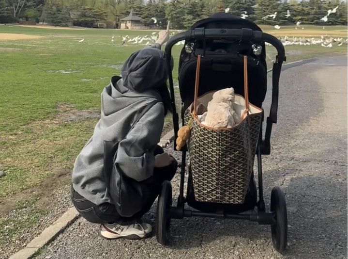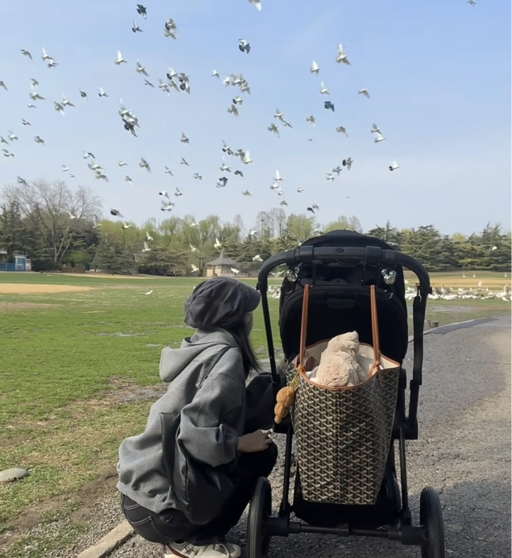 在户外的庄园里,有羊驼还有小马,再加上天气可以,是个稳健踏青的好场地,大阳城还有好多的鸽子,何穗戴着帽子,衣裳灰色外衣和玄色牛仔裤,打扮失业,宝宝坐在婴儿车里,天上鸽子飞过的时刻,何穗还指给男儿看。